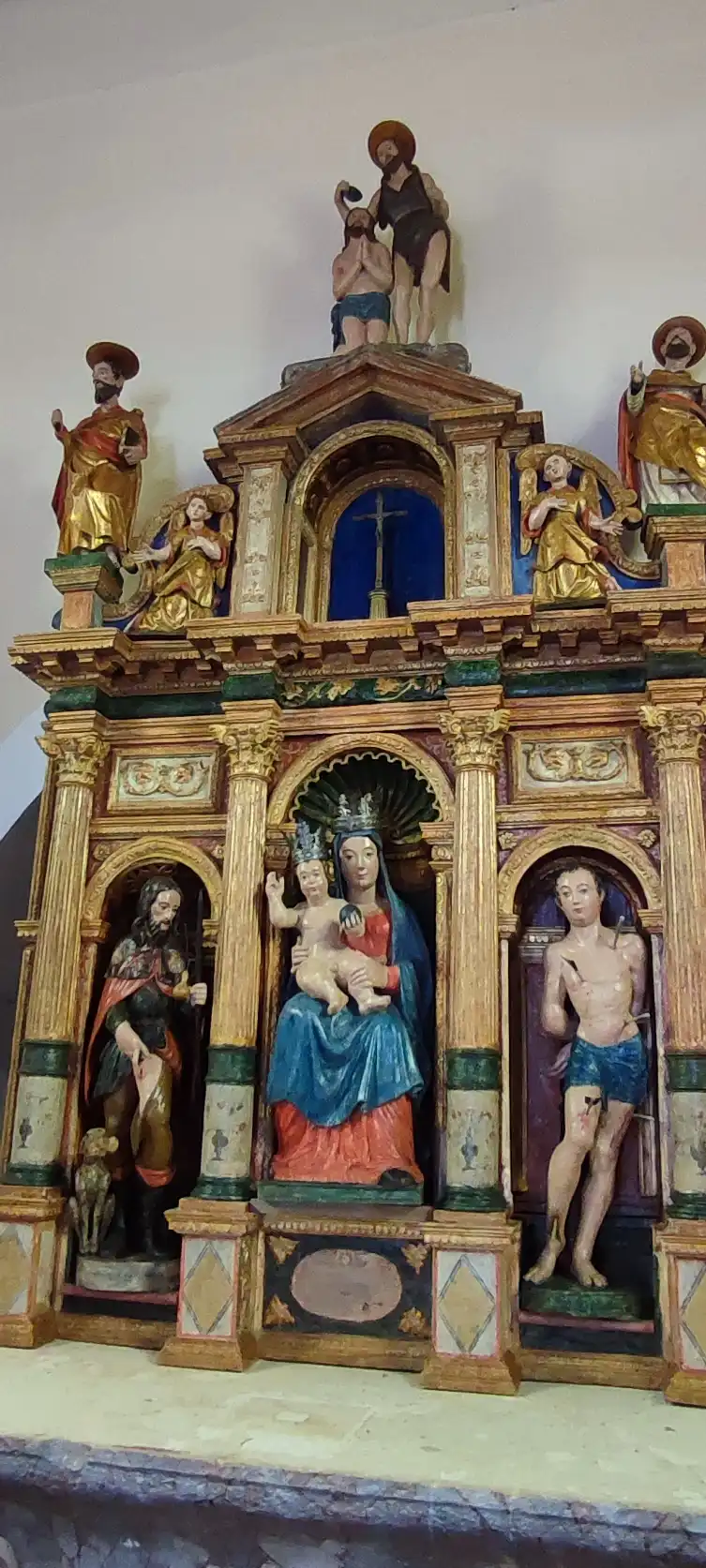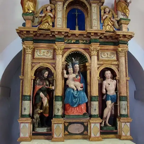 2.    Restauro e conservazione (2025) – sono stati rimossi i ridipinti e gli interventi non adeguati, consolidato il supporto ligneo, stabilizzate e ricostruite le parti danneggiate e reintegrati gli strati policromi conservati. L’altare è stato riportato alla sua maggiore autenticità, con ricostruzioni minime e rispetto dei livelli storici.
